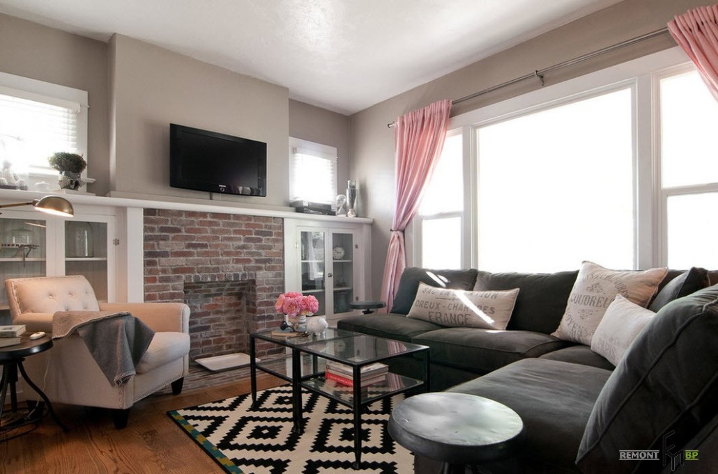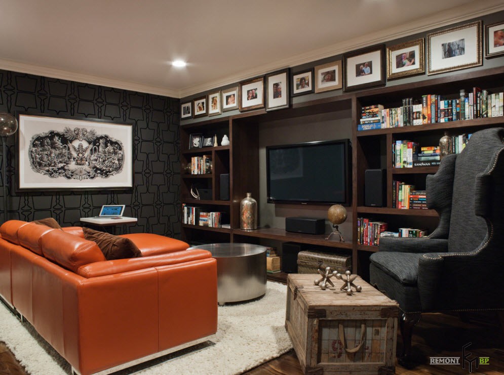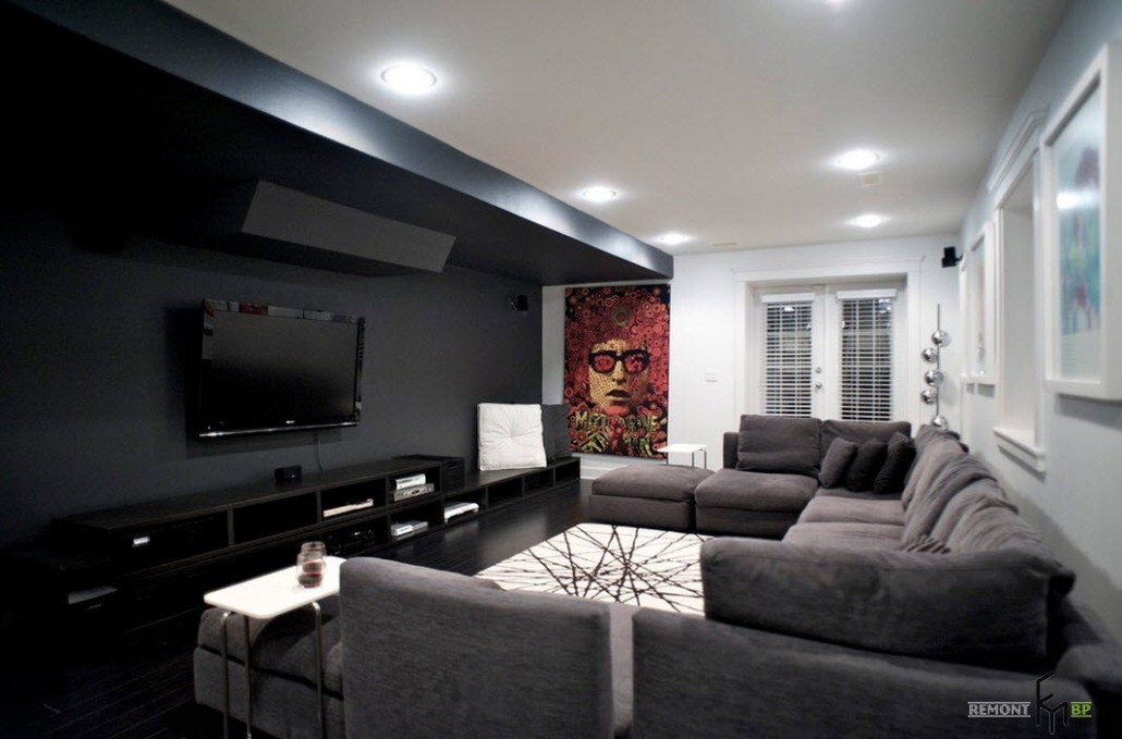 Строгие стили априори не предполагают цветовую полихромность, и зачастую декоративные точки расставляются за счет облицовочных текстур и текстиля, парных или одиночных штрихов, разбросанных по периметру. Так, на сдержанном фоне грифельной стены, черных корпусов мебели и техники, и серой обивки дивана противоположная белая вертикаль с картинами становится доминирующей. Это пример того, как умелое дирижирование 2-3-мя цветами приводит к отличному результату. Со временем в таком периметре допустимо сделать эстетические поправки: приглушить или насытить тона, добавить пару новых атрибутов. Дизайнерские приемы позволяют не зацикливать внимание на концептуальной сдержанности, а вспомогательные детали позаботятся об эстетическом впечатлении.В принципе востребованы идеи, приводящие к быстрой трансформации пространства.