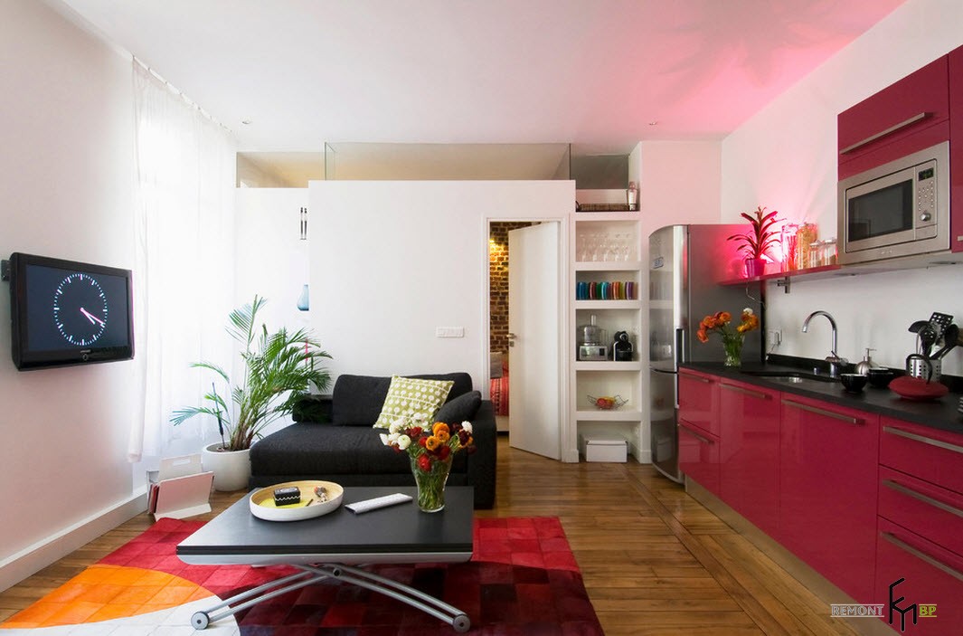 Организации небольшой гостиной всегда обусловлена эргономичной эксплуатацией каждого сантиметра. Это – правильное распределение цветов, освещения, мебельных предметов, в конечном итоге демонстрирующих универсальную модель уютного жилья. На ограниченной площади 2-х комнатной квартиры, вероятно материализовать большинство задумок благодаря расширению гостиной за счет лоджии, кухни или холла. В результате манипуляций, условные границы зон и компактное распределение интерьерных групп, образуют многофункциональный периметр с максимальным комфортом.