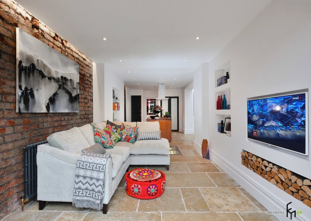 Кантри, японский, экостиль немыслимы без участия натуральных основ и особенно актуальны в небольших гостиных. Стилизация в деревенской манере предусматривает окрашенные плоскости с характерной потертостью и незатейливые интерьерные предметы. Обозначенные концепции ратуют за естественность, простоту, яркое освещение и отсутствие вещей второстепенного значения. Чтобы разнообразить варианты оформления предлагаются современные продукты. Из этой серии – мультиколорные краски, содержащие идеальную формулу для покрытия любых структур. Они не теряют первоначальный вид в длительной эксплуатации, напоминают мозаичную россыпь цветных точек и предлагают роскошь искусственной имитации разных текстур.