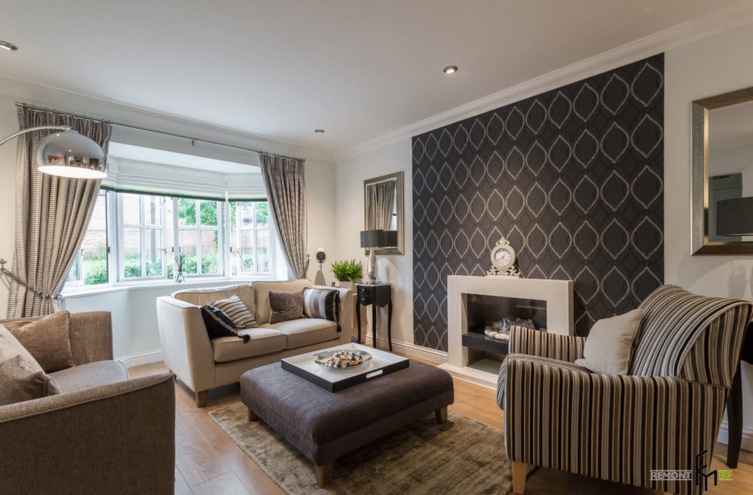 В этой связи стоит обратиться к новой облицовочной продукции. Если раньше 3Д обои воспринимались лишь как сюжетные заставки из фэнтези в развлекательных заведениях, сейчас они отлично справляются с формированием объемной гостиной. Помимо иллюзорного впечатления, с их помощью создаются интересные сюжеты с красотами подводного мира, космоса, анималистические «портреты». В сопровождении подсветок панорамная заставка смотрится необычно и не требует других аксессуаров. Для полного погружения в идею допустимо приобрести пару тематических экземпляров.Нельзя оставить без внимания необычные флоковые покрытия. Они маскируют неровности и трещины стен и работают в пользу периметра. Приветствуется их сочетание с жидкими обоями, что повышает практичность красивой отделки.