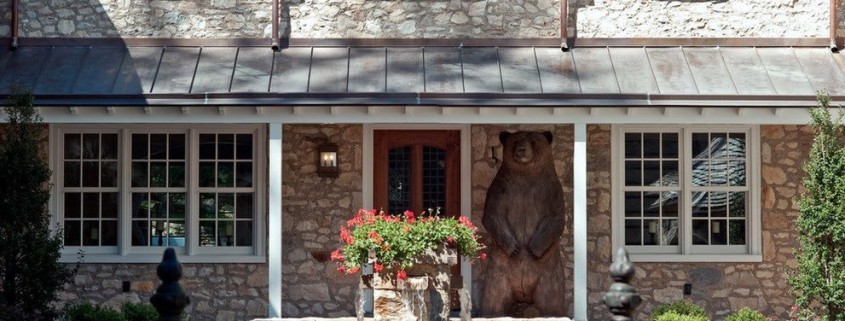 Итак, проследуем к главному входу, где нас будет встречать царь лесов, выструганный из массива дерева напоминающий не только о загородной жизни, но и невероятной близости дикой природы.