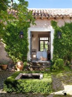 Обильное использование каменной кладки и элементов конструкций и опор из дерева не отягощает интерьер и позволяет успешно интегрировать в него современные способы организации освещения или проводки инженерных систем. Находясь в этом доме, можно наслаждаться всеми благами современной жизни, но при этом чувствовать дух сельской жизни, ее простоты и лаконичности, близости к природе и органичности.