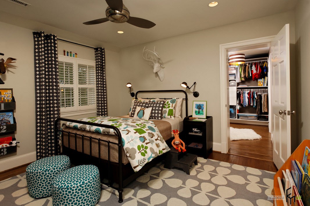 Яркие цвета, геометрические принты, зарисовки на тему астрологии, фэнтези, анималистические серии, абстракции и универсальные рисунки на ткани приоритетны в выборе юных джентльменов. Бандо с фактурными аппликациями, фигурные драпировки в виде волн или парусов – хит в оформлении спальни для мальчика. Особенно красиво смотрятся такие вариации в тематическом дизайне, когда декоративные составляющие моделируют пространство согласно идее. Колоритный текстиль изначально не требует сложной драпировки и зачастую достаточно свободно ниспадающих полотен, чтобы проем смотрелся достойно без участия дополнительных аксессуаров.