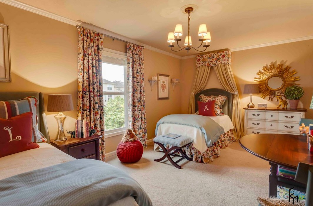 Поиск новых идей в текстильном дизайне приводит к уникальным результатам. Элементы из ар-нуво, шебби-шика, рококо, асимметричные полотна в духе модерн, шторная классика в авторских импровизациях смотрятся оригинально. Если есть желание оформить спальню по мотивам сказок, с помощью ткани, многополосных карнизов, разнообразного декора сюжет несложно материализовать. Со временем развития кругозора ребенка потребуется коррекция оформления с учетом новых интересов. Проще всего это сделать опять-таки с помощью занавесей, с которыми кукольная комната трансформируется в пространство для тинэйджера. О том, как манипулировать цветами и воплощать идеи рассмотрим в статье.