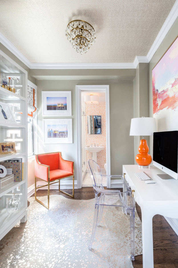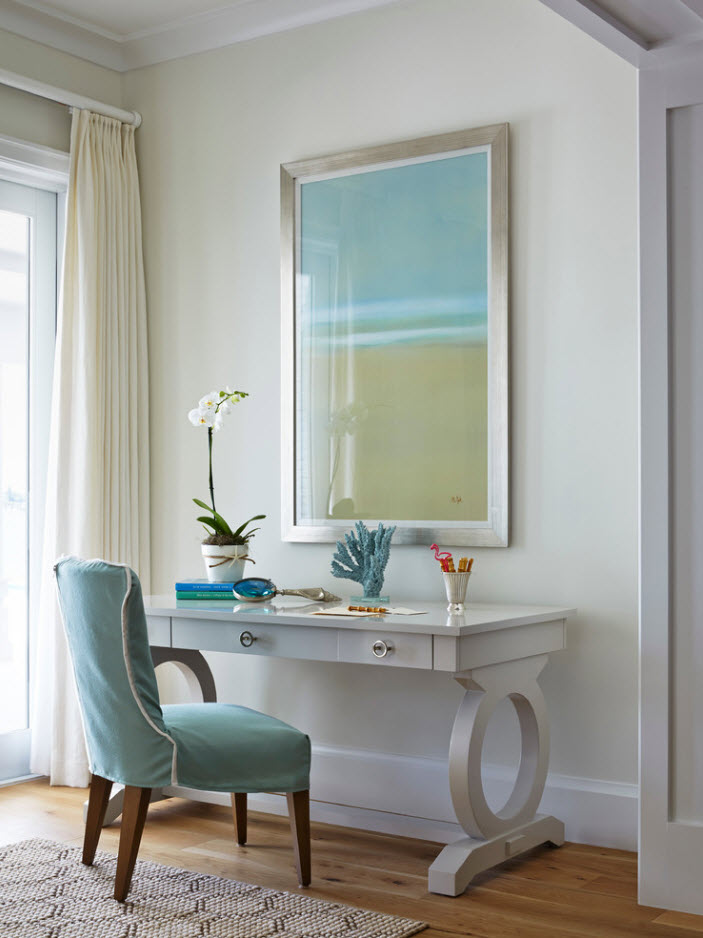 Специалисты по колористике рекомендуют использовать нейтральные цветовые решения для кабинета, чтобы создать атмосферу, которая не будет отвлекать от главного – рабочего процесса. Но большинству хозяев квартир и домов такой подход кажется скучноватым, невыразительным. Для того чтобы привнести в спокойны, пастельный интерьер кабинета акцент, достаточно повесить колоритную картину на стену или приобрести яркое кресло. Акцентные элементы не будут вас отвлекать во время работы, но создадут определенный характер всего образа интерьера.