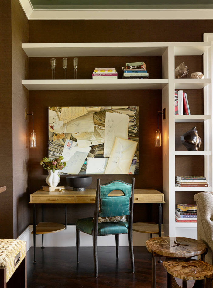 У многих из нас при словосочетании «домашний кабинет» невольно возникают ассоциации с роскошным помещением, отделанным дорогими породами дерева, роскошной мебелью – обязательно, большим письменным столом и креслом с кожаной обивкой, тяжелыми плотными шторами с декором и толстым ковровым покрытием, книжными шкафами со стеклянными дверцами, за которыми красуются корешки коллекционных книг. Современный домашний офис часто не требует даже отдельного помещения, большие письменные столы больше не нужны, гаджеты наших дней помещаются на небольших столешницах-консолях. Но даже самая скромная по размерам рабочая зона нуждается в достойном оформлении. Сколько бы времени вы не проводили за компьютерным или письменным столом – этот функциональный сегмент должен отвечать требованиям эргономики, практичности и эстетичности. Мы подготовили для вас 100 фото реальных дизайн-проектов домашних кабинетов (рабочих зон), оформленных самым разнообразным образом. Надеемся, что вы сможете вдохновиться для создания идеального рабочего места в рамках собственного жилища.
