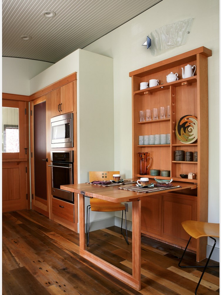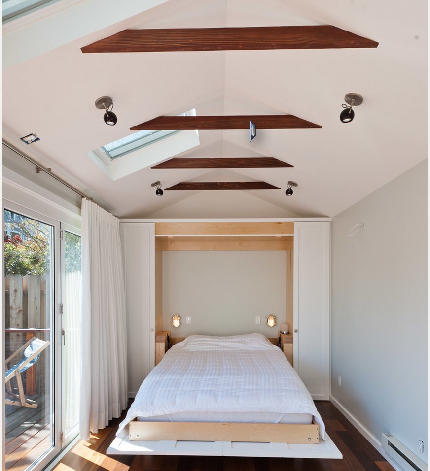 Кровать-трансформер – оригинальный вклад современных производителей мебели в дизайн маленьких спален. Собранную утром кровать практически нельзя выделить среди прочей мебели, настолько она органично вписывается в окружающий интерьер. Аналогичным элементом может стать и стол-трансформер.