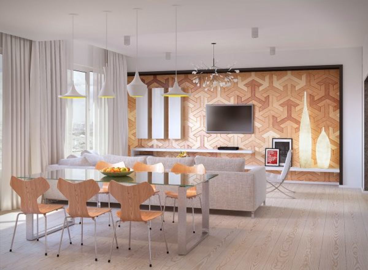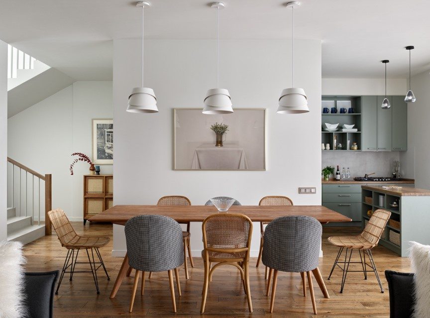 - Дизайнерский дуэт столовой и гостиной