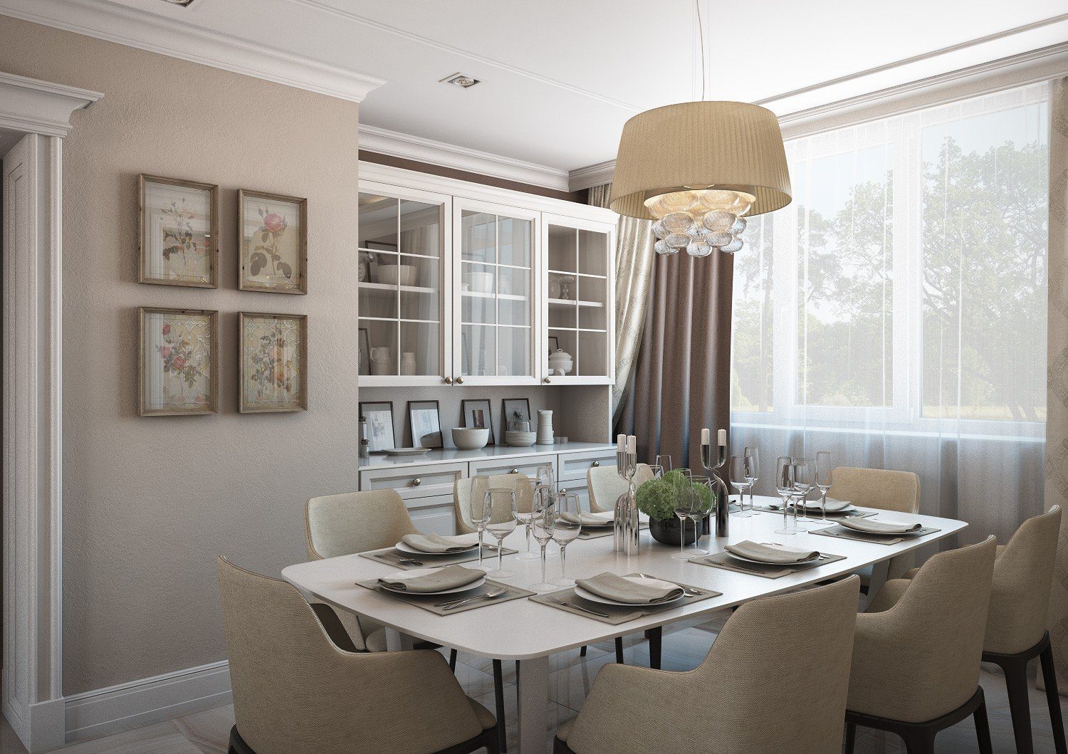 Ну и конечно необходимо украсить столовую при помощи картин, различных статуэток, живых цветов в горшках и прочих идей.