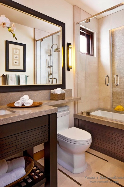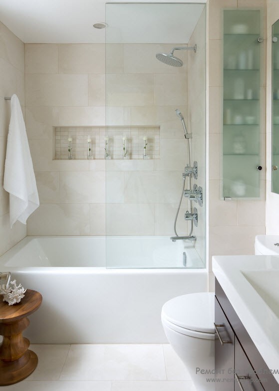 Между прочим, для тех, кому важен комфорт и не нужны излишества, можно сконструировать ванну из самых необходимых элементов: ванна, душевая зона и унитаз – практично и удобно даже при самых маленьких размерах помещения.