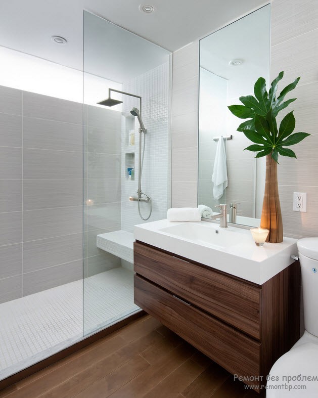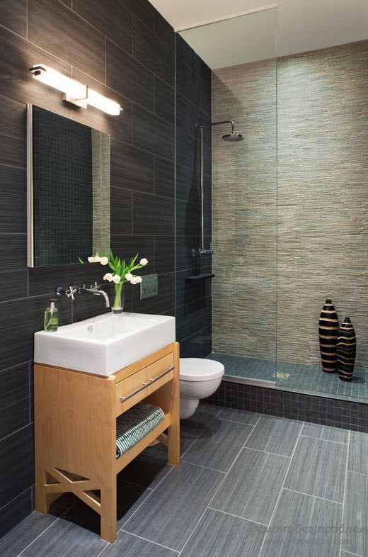 Профессионалы советуют керамическую плитку или любой другой материал, который обязательно должен обладать водоотталкивающим свойством. Цвета, формы и виды в наше время представлены в огромном ассортименте, что позволяет сделать дизайн на любой вкус. А, к слову, светлая ванна скажет о вашей гостеприимности и открытости.