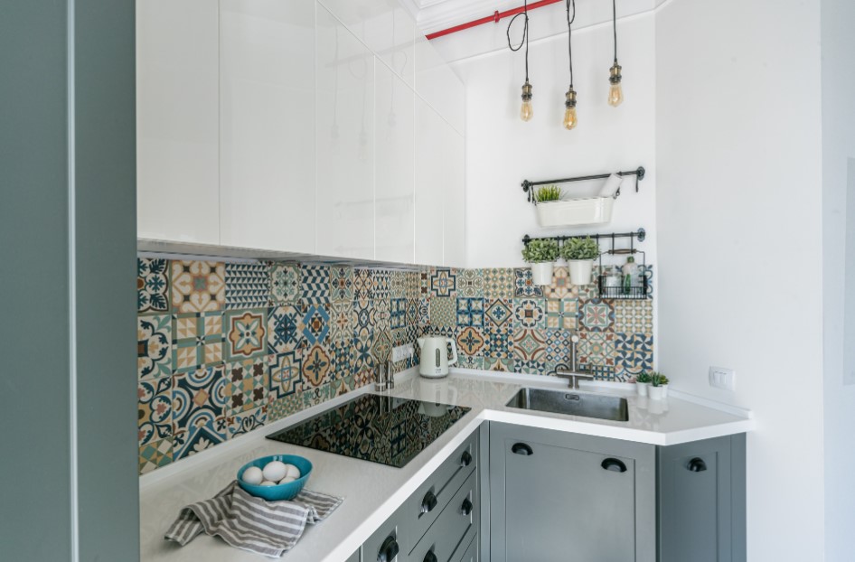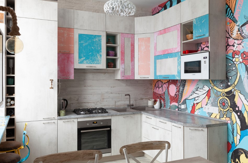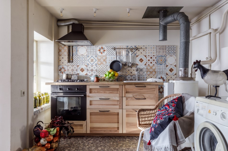 - Если речь идет о кухонной зоне, то следует оформлять все по горизонтали, отдельными секциями, например, кухонный фартук – его можно сделать повыше.