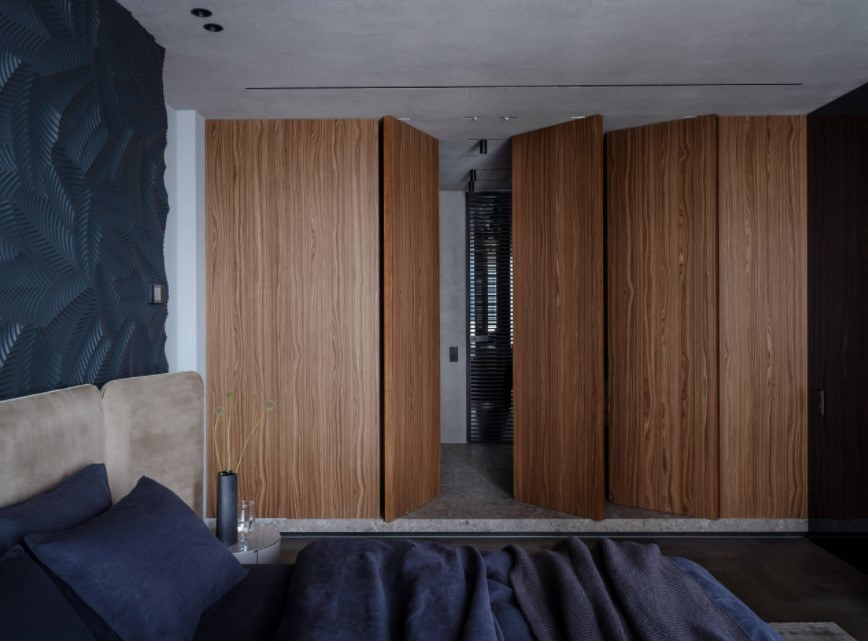 А еще одно свежее решение – выдвижные стенки, секции гардероба для вещей и обуви. Это позволит по-настоящему сэкономить целых 30-35 сантиметров, да и смотреться такие стенки будут гораздо эпичнее, чем простые шкафы и стеллажи.
