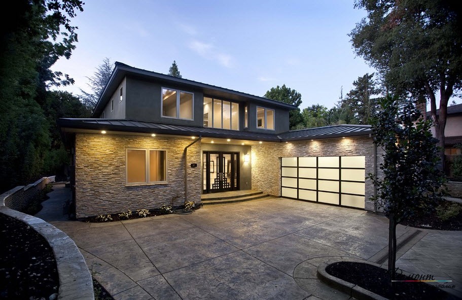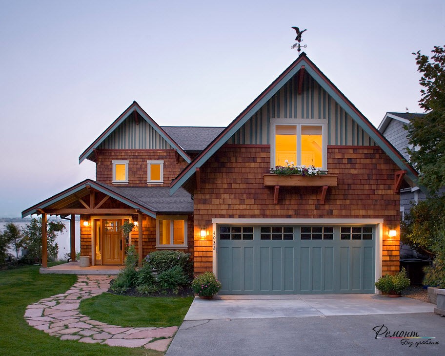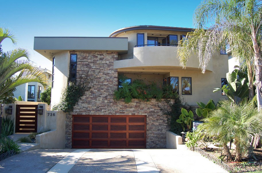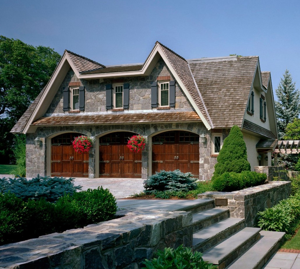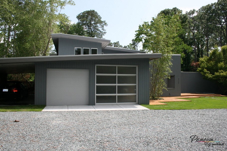 Современный гараж должен быть не просто местом стоянки автомобиля. Он должен быть гармоничным элементом стилевого решения вашего дома. Поэтому следует особо тщательно подходить к его дизайну. Конечно, в первую очередь надо определиться с отделкой гаража снаружи. Внешний вид гаража не должен быть контрастным по цвету к остальным домовым застройкам. Хотя, возможно, вам захочется выделить его из общего ансамбля. Что же, оригинальность в дизайне тоже приветствуется, хотя большого распространения этот вариант не получил. Все-таки, цветовая гармония в дизайне дома с гаражом предпочтительней. Рассмотрим самые значимые вопросы его дизайна.