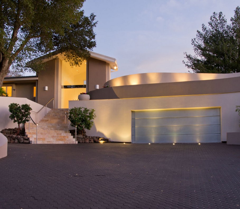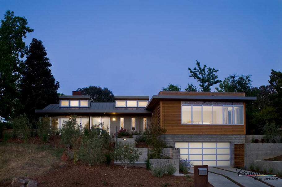 Довольно интересным решением является одноэтажный дом с гаражом, построенным ниже уровня поверхности земли. Его оригинальность заключается в том, что данный проект существенно экономичней, нежели все остальные. В нем используется благоприятный для этого рельеф местности, позволяющий значительно сократить расходы на строительные материалы и последующее отопление гаража. Выгода налицо. Этим часто пользуются жители холмистых местностей. Вариантов постройки дома с гаражом на уровне поверхности земли множество. Выбор проекта за вами.