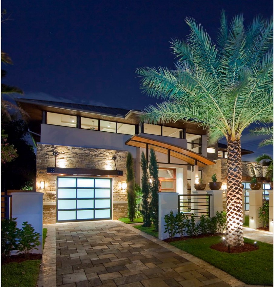 Наружное освещение дома с гаражом требует отдельного внимания, потому что красивое и правильное освещение является прекрасным дополнением к общему дизайну. Ваша творческая мысль преобразит ночной пейзаж вокруг. Правильно поставленное освещение вызовет у вас и соседей восхищение, а в случае затянувшегося застолья, будет хорошим помощником в благополучном возвращении домой. Но при организации освещения следует подумать не только о своей безопасности, но и о безопасности вашего дома и гаража. Светильники должны быть достаточно мощными для освещения вашего дома и гаража. Для остальной части подворья вполне будет достаточно декоративного освещения.