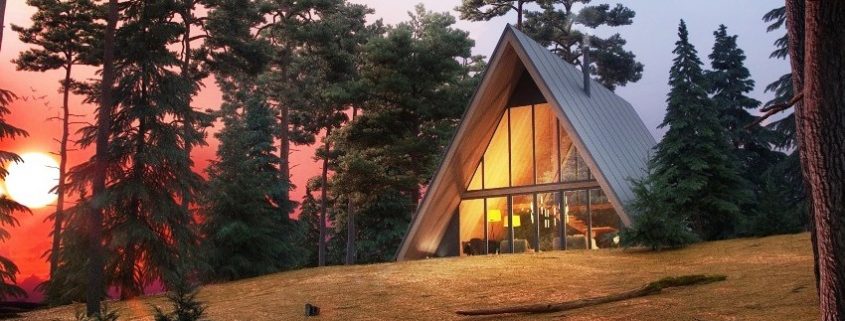 Визуально строение выглядит как треугольник. Его каркас сооружен из треугольных рам. Особенность таких домов – отсутствие стен: двускатная кровля исходит от фундамента, иногда из цоколя. Среди преимуществ домов-шалашей можно отметить: