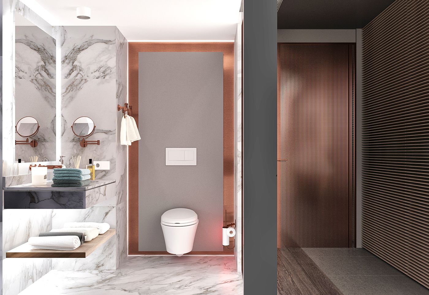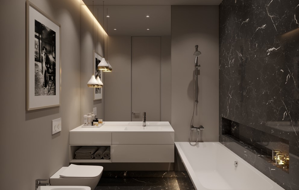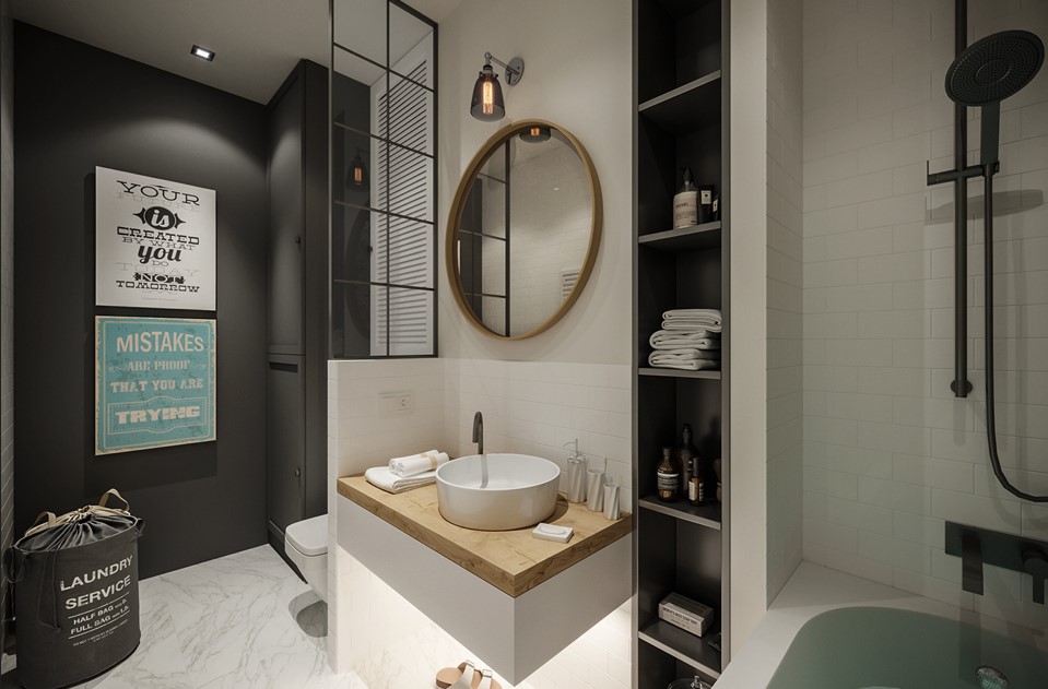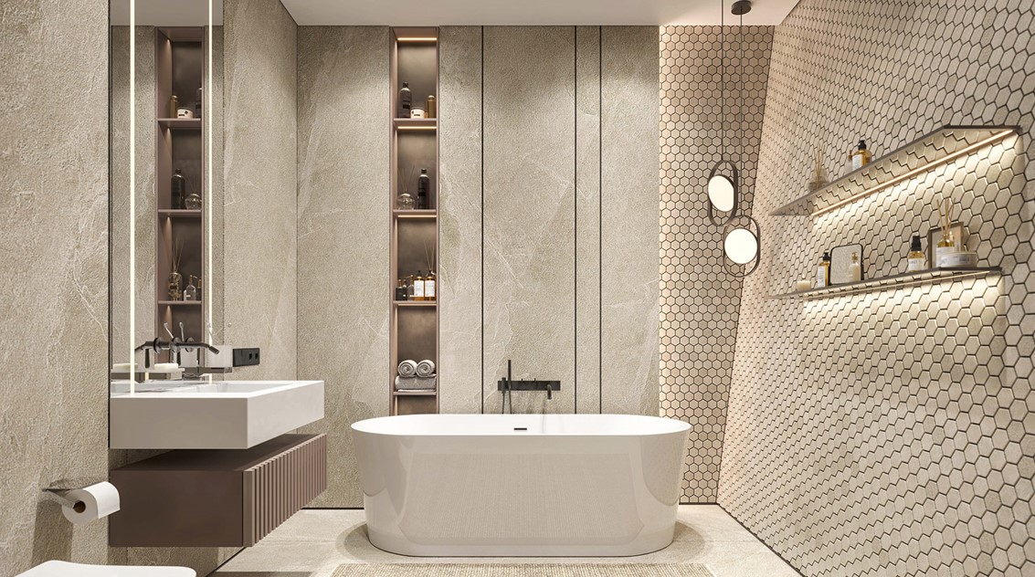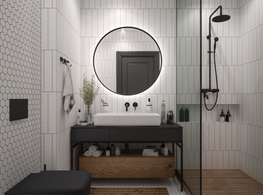 - Ниши: добавьте аккуратные ниши для хранения средств гигиены.