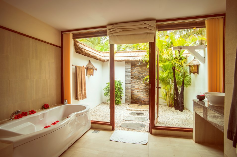 - Угловая душевая кабина сэкономит пространство и добавит уюта.