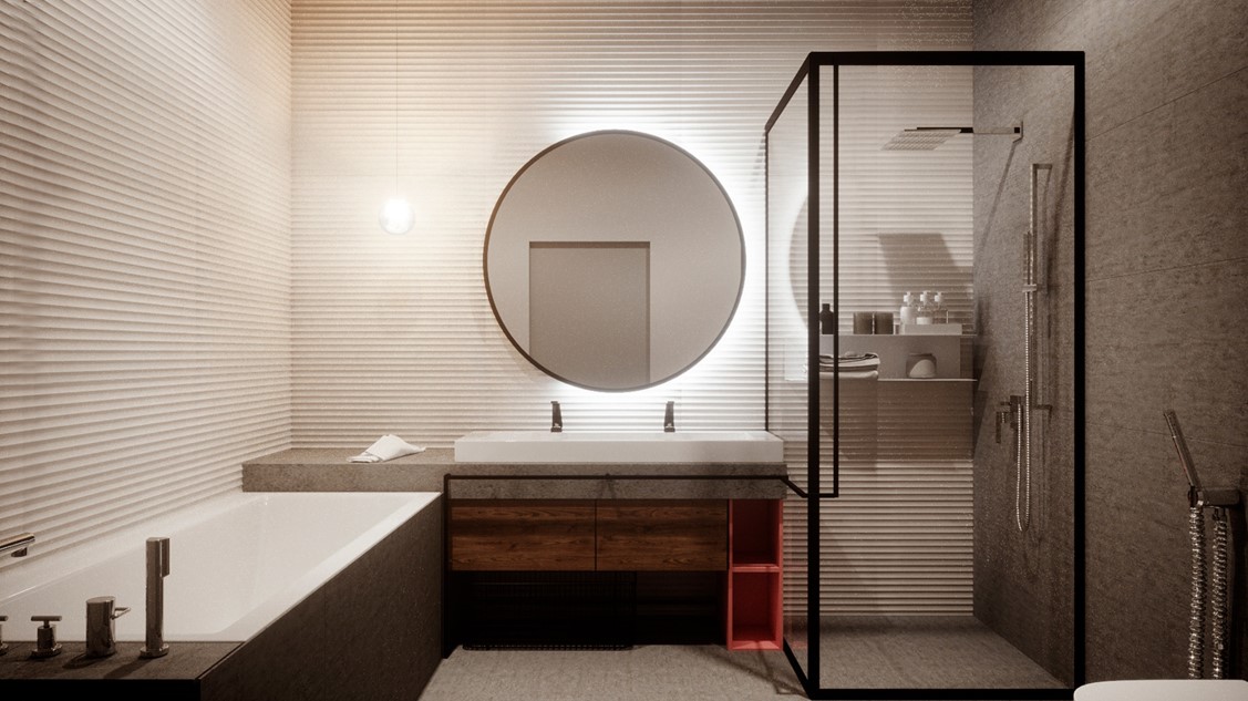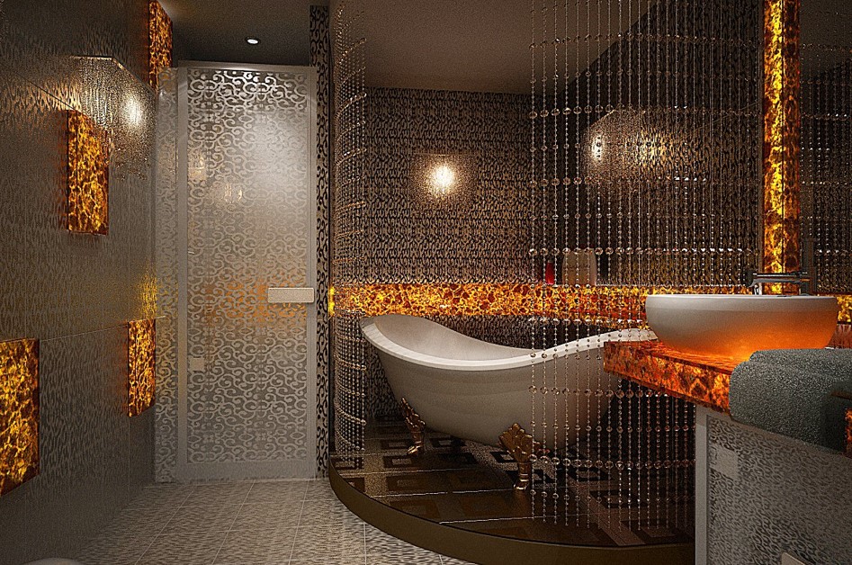 - Освещение ванны или душевой кабины: используйте светодиодные ленты или точечные светильники, расположенные под защитным каркасом, чтобы создать световой акцент.