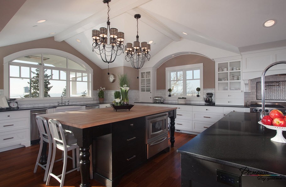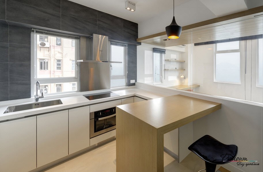 - оформление кухни с двумя окнами потребует более пристального внимания и повышенных расходов на услуги дизайнера.