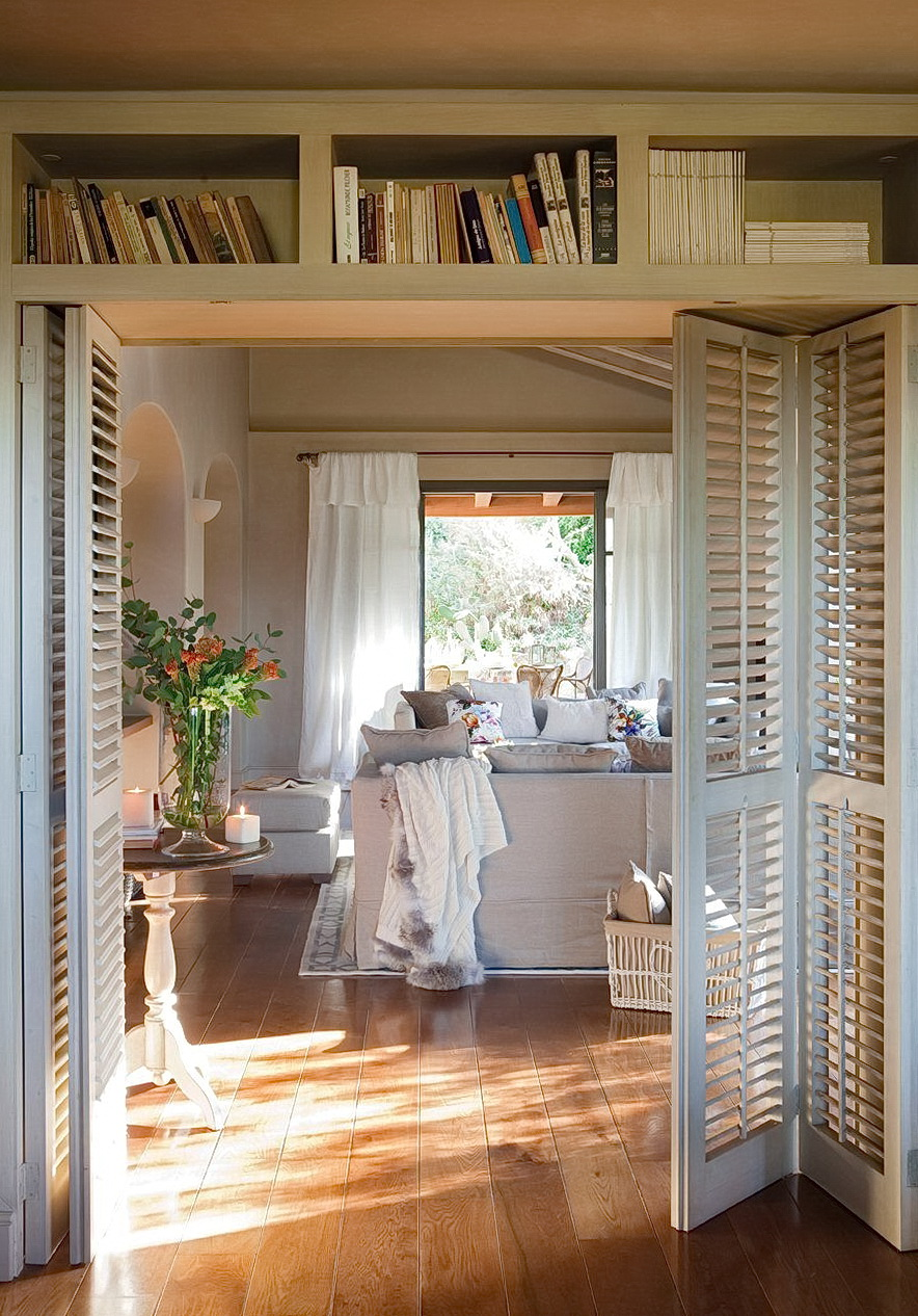 Белые и древесные двери-гармошка — утонченная стилизация