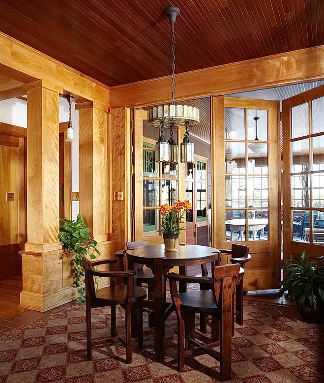 Белые и деревянные створки, разделенные сеткой из маленьких и больших стеклянных окон, обеспечивают больше света в интерьере, дополняя французскую и скандинавскую стилизацию.