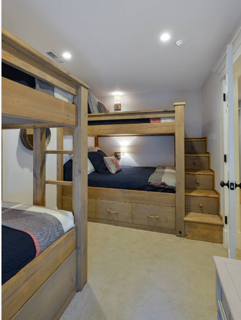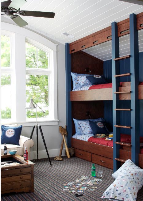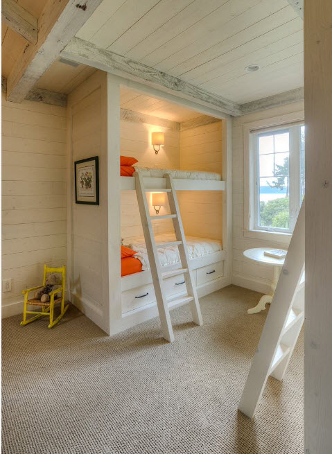В некоторых случаях готовые решения, которые можно найти в мебельных магазинах, не устраивают родителей. Это может быть связано с нестандартной планировкой комнаты, оригинальной архитектурой самого помещения или требований хозяев (их детей) к организации спальных мест. Встроенная двухъярусная кровать позволяет рационально использовать имеющиеся квадратные метры. Конструкции, которые встраиваются в нишу или между двумя стенками узкой комнаты чаще всего оснащены не только спальными местами, но и системами хранения. В некоторых случаях встроенные модели представляют собой целый комплекс из спальных мест, рабочего пространства (письменный или компьютерный стол) и систем хранения различной модификации (не только выдвижные ящики под нижней кроватью, но и полочки, навесные шкафчики).