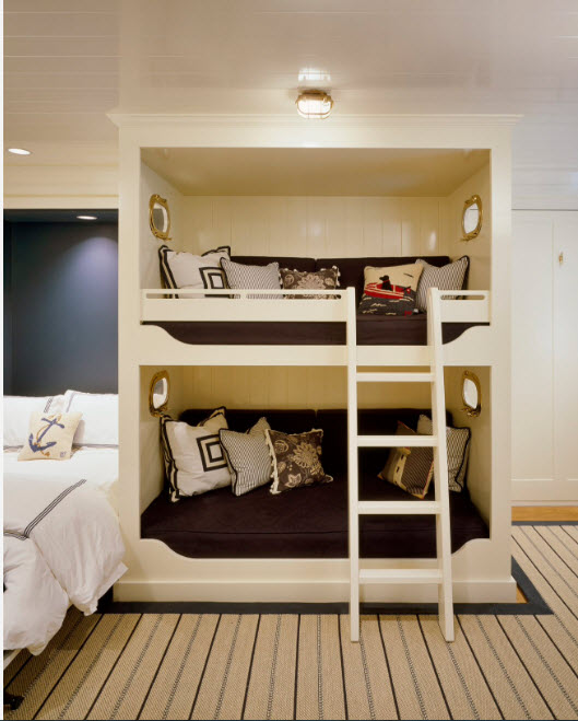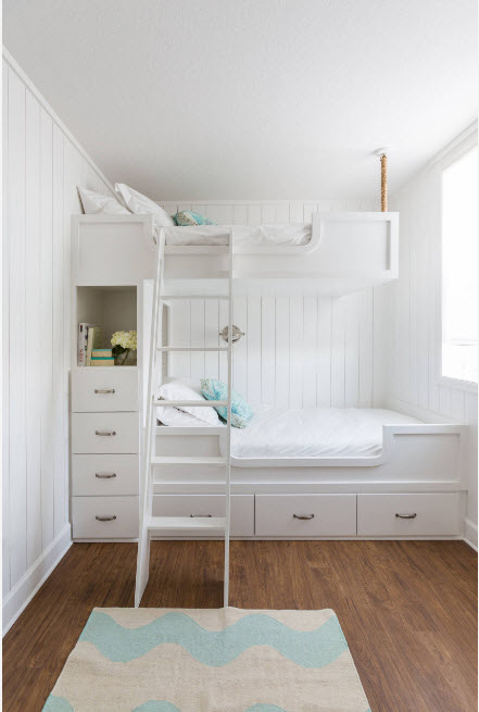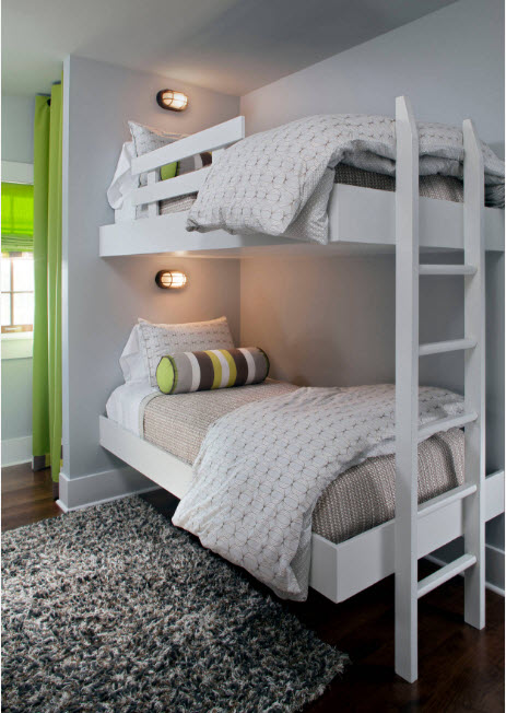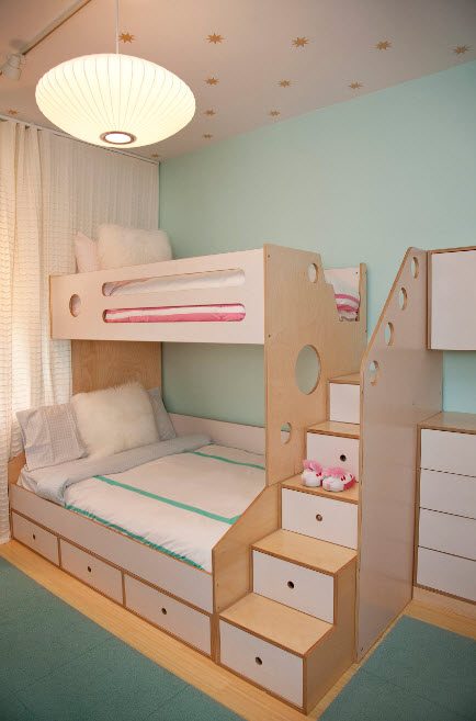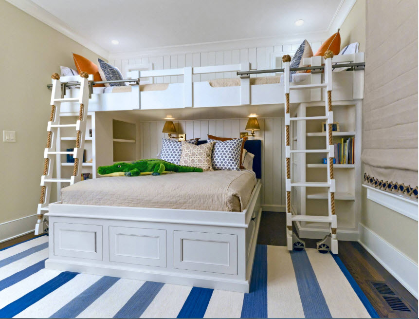 Если у вас двое и более детей, а детская комната одна, да и та не отличается большой площадью, то двухъярусная кровать – оптимальный способ создания спальных мест. Но на этом функции этого невероятно практичного, экономящего полезное пространство жилища предмета мебели, не заканчиваются. Предлагаем вам ознакомиться с сотней современных дизайн-проектов помещений с двухъярусными кроватями, узнать критерии выбора материала и способа исполнения, найти вдохновение для создания индивидуального дизайна.
