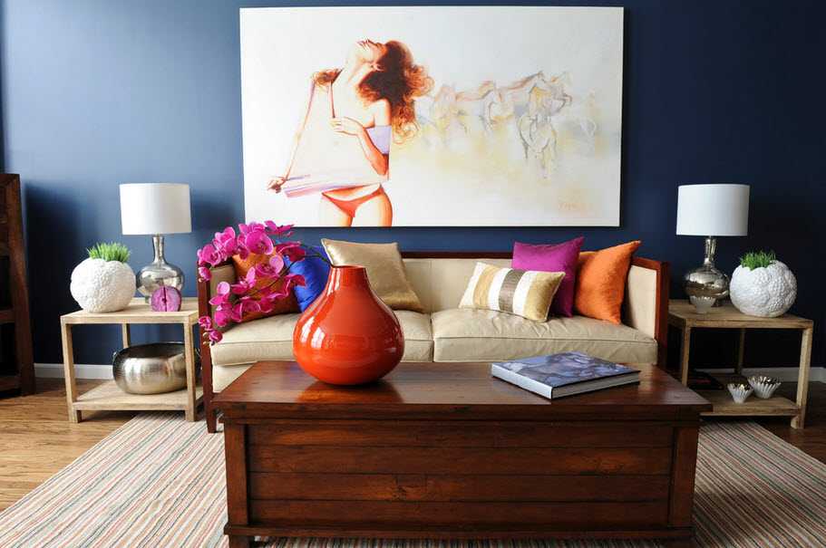 Декор в квартире в эклектическом стиле может быть самым разнообразным. Учитывая особенности этого направления в обстановку идеально впишутся самые разнообразные предметы: вазы, картины, фоторамки, статуэтки, подсвечники и прочие безделушки.