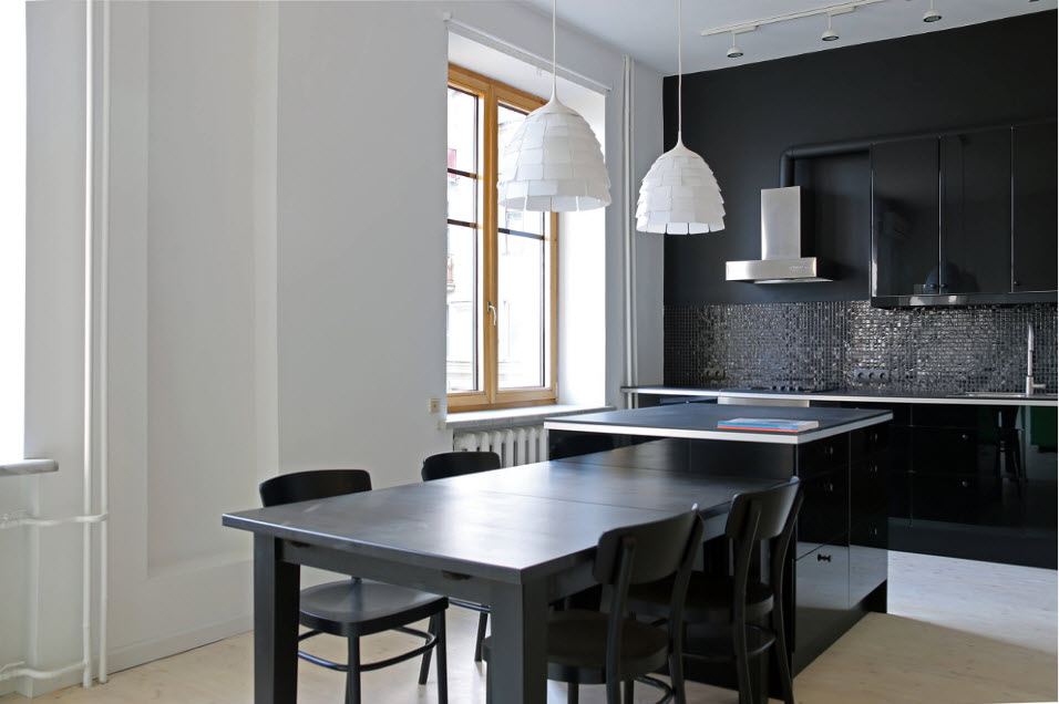 Следующее фото – очередное подтверждение популярной цитаты “все гениальное – просто”. Горизонтальные черные полосы самый простой на первый взгляд фартук превращают во что-то уникальное. Такое решение – действительно идеальный вариант для тех, кто стремится к безупречному стилю, современности, изысканной простоте и лаконичности.