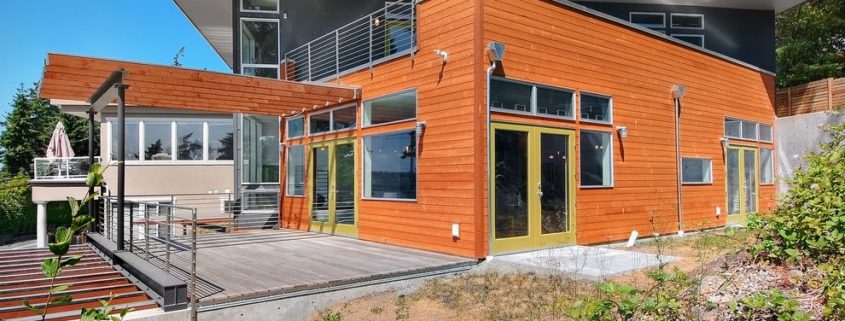 Искусственная древесина активно используется для оформления фасадов домов вод дерево. Инновация отделочных материалов достигла такого уровня, что непрофессионалу трудно отличить натуральный материал от искусственного аналога. Достаточно часто из естественного сырья нелегко получить желаемый результат для наружной отделки дома. Виды имитации бруса созданы так, что они совместимы с последними тенденциями в дизайне. Недостатком может являться только повторяемость шаблонов. Каждый элемент идентичен. Чтобы избежать неестественного эффекта, некоторые элементы можно поместить вверх дном или выполнить облицовку террасы и дома с небольшим смещением элементов относительно друг друга.