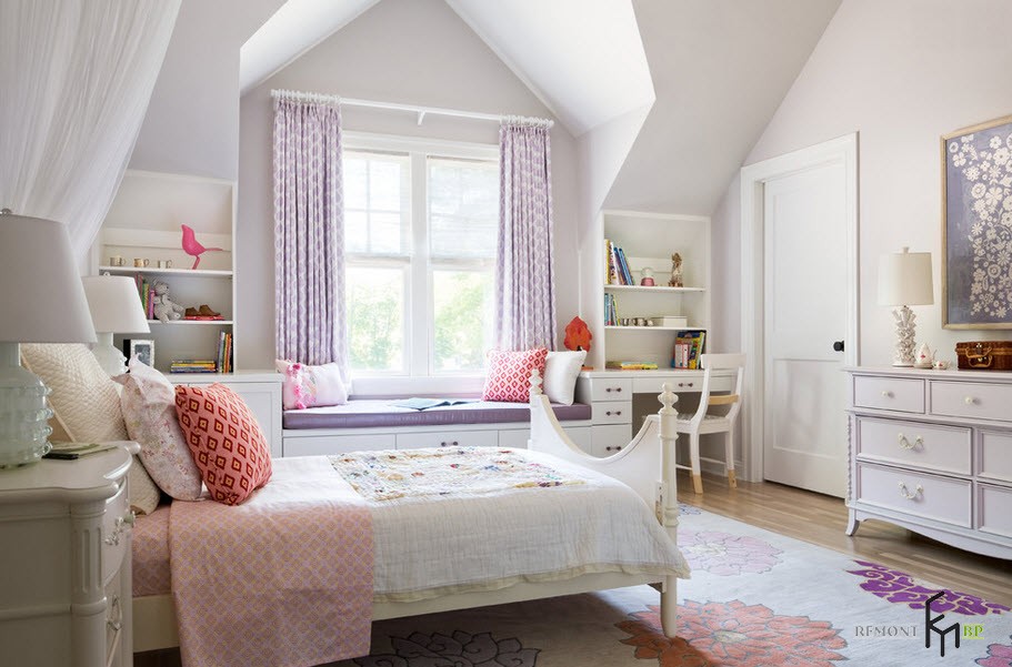 Для этого стиля также лучше использовать шторы с цветочным принтом нежных оттенков, например, лавандовых. Беспроигрышный вариант при использовании другого однотонного текстиля в комнате.