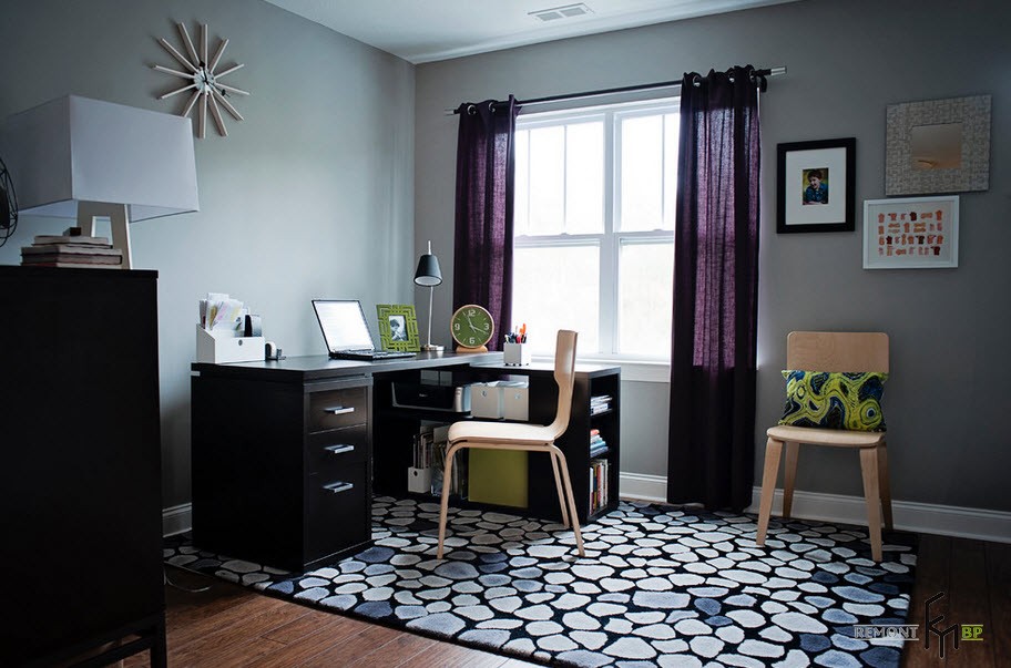 Данная комбинация создает спокойную и довольно строгую атмосферу, которая идеально подойдет для кабинета или спальной комнаты.