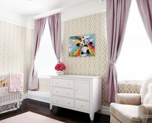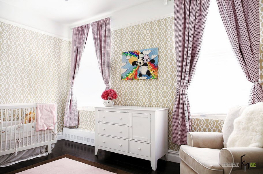 - В детской стоит выбирать шторы более нежного оттенка и легкой текстуры. Хорошим вариантом станет использование ткани неоднородного цвета, с рисунком.