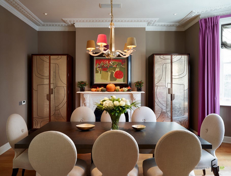 Основная идея этого стиля – сочетание респектабельной классики и современной практичности. Фиолетовые портьеры из мягкой, плотной, возможно, бархатной ткани станут прекрасным дополнением интерьера в неоклассическом стиле.
