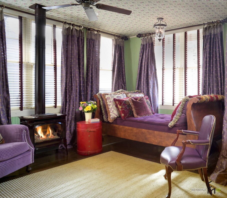 Фиолетовые шторы способны украсить интерьер любой комнаты. Их чаще всего применяют: