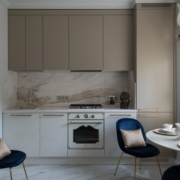 Идея совместить в интерьере фисташковый, кремовый или бежевый станет прекрасным решением для оформления кухни во многих стилях. Особенно шикарно такие сочетания смотрятся в помещениях с небольшой площадью или кухнях с угловым расположением гарнитура. Дополнительно рекомендуется использование белоснежных либо золотистых деталей, что можно красиво обыграть в декоре стен, текстиле и прочих составляющих.