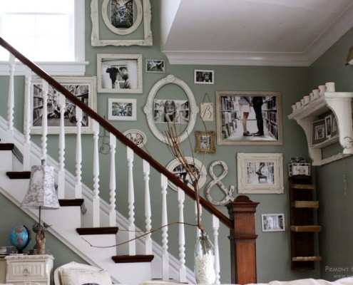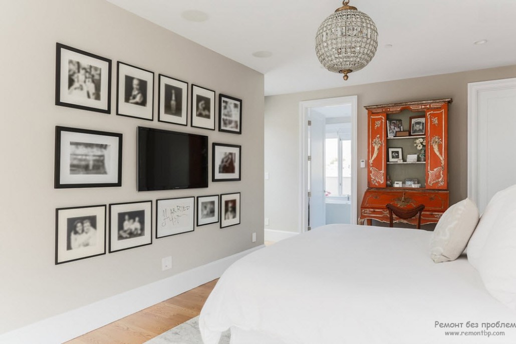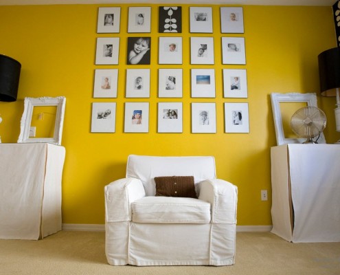 - Если у вас есть желание разместить определенное количество фотографий, различающихся по размеру, рекомендуется выстроить их в своеобразную галерею. Снимки должны располагаться на уровне глаз по убыванию: от большей фотографии к меньшей на незначительном расстоянии.