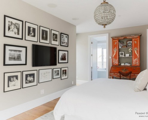 - Чтобы сделать акцент на любимой фотографии, необходимо поместить ее на стену отдельно. Рекомендуется придерживаться следующего правила : фотоснимок должен быть крупным, обрамленным в эффектную рамку – это не даст изображению затеряться на общем фоне.