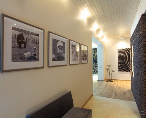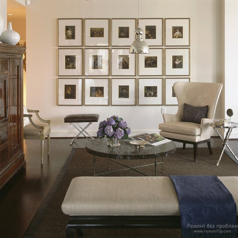 - Не следует размещать в одной экспозиции фотографии в рамках, изготовленных из различных материалов. Так, например, расположенные рядом фотоработы, одна из которых декорирована стеклом, а другая – деревом, способны придать вульгарный вид всему интерьеру.