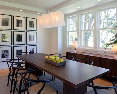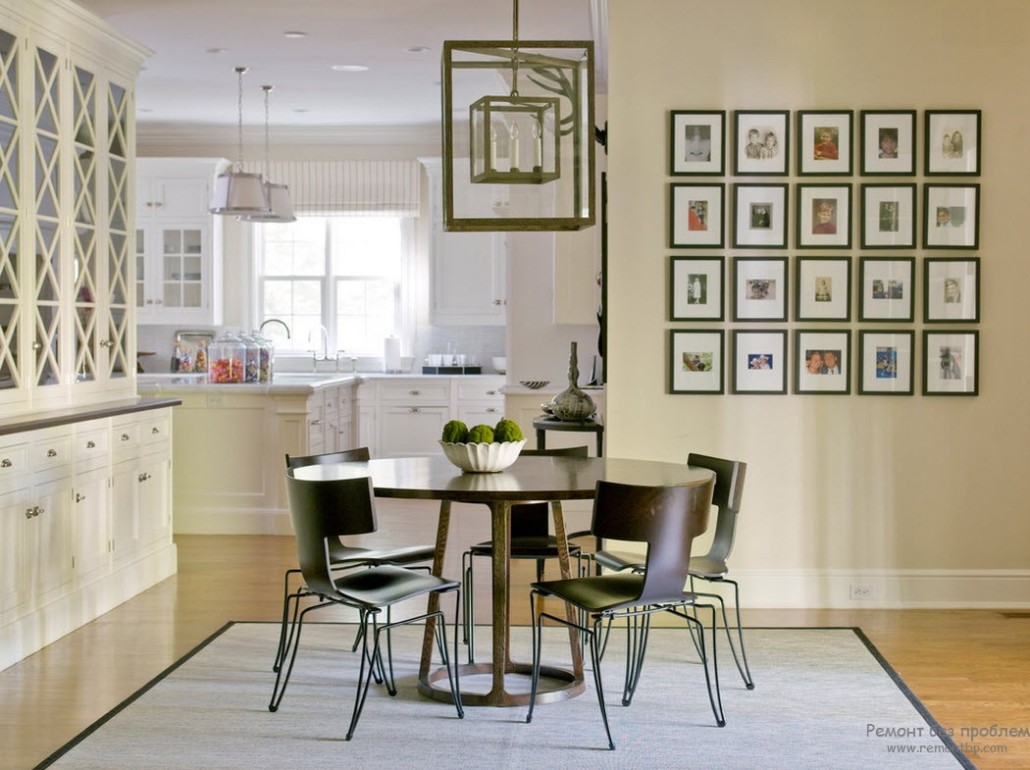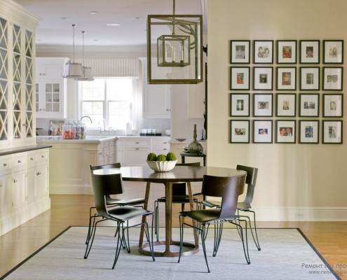 - Старайтесь избегать традиционного размещения фотографий в ряд и в форме треугольника – такое решение сделает интерьер скучным и невыразительным.
