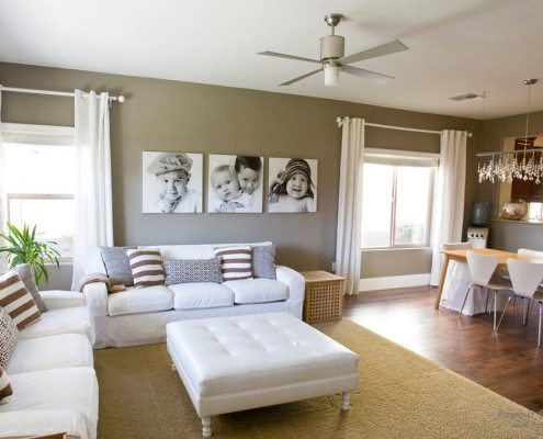 - Темы фотоснимков должны соответствовать функциональному назначению и стилю интерьера. Для гостиной более уместны пейзажи и жанровые снимки, в кабинете будут идеально смотреться портреты, в помещении кухни – фото цветочных композиций и натюрморты, в детской комнате – фото малыша разных периодов жизни, в холле – предметная макросъемка.