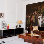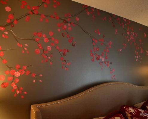 Также эффектно смотрятся крупные изображения цветов или других предметов. При этом в остальной обстановке стоит избегать ярких предметов, так как такое изображение должно занять центральное место. Усилить эффект можно с помощью подсветки.