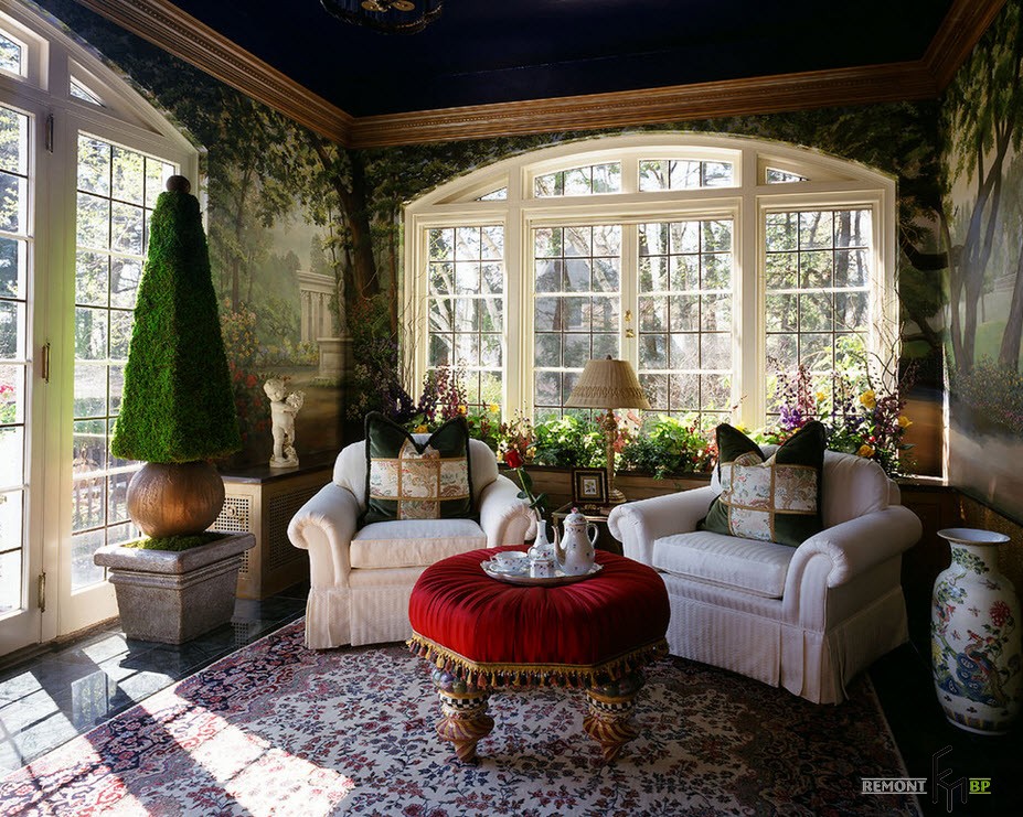 Еще одним преимуществом фотообоев является возможность их нанесения на любую поверхность: потолок, стена, пол, неровные округлые поверхности и прочее. Таким покрытием можно украсить колонны, элементы арок и ниши.