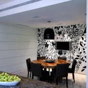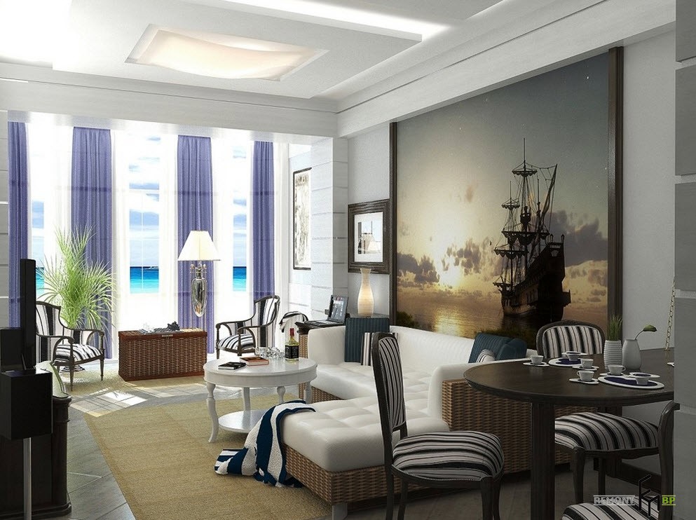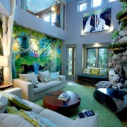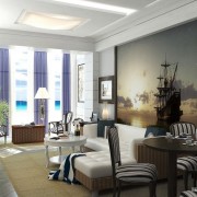Отличным способом использования фотообоев может быть зонирование с их помощью пространства. Выбирая тематику изображения можно выделить зону отдыха или столовую. Наклеивая фотообои на потолок также можно отметить разделение комнаты на зоны.