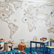Интересно смотрятся фотообои, имитирующие рисунки, сделанные карандашом или углем. Таким узором можно покрыть как одну стену гостиной или коридора, так и все стены. Если рисунок изображает сказочных героев или популярных персонажей мультфильмов, то эти полотна можно использовать для оформления детской. При этом все же стоит использовать более яркие и красочные их разновидности.