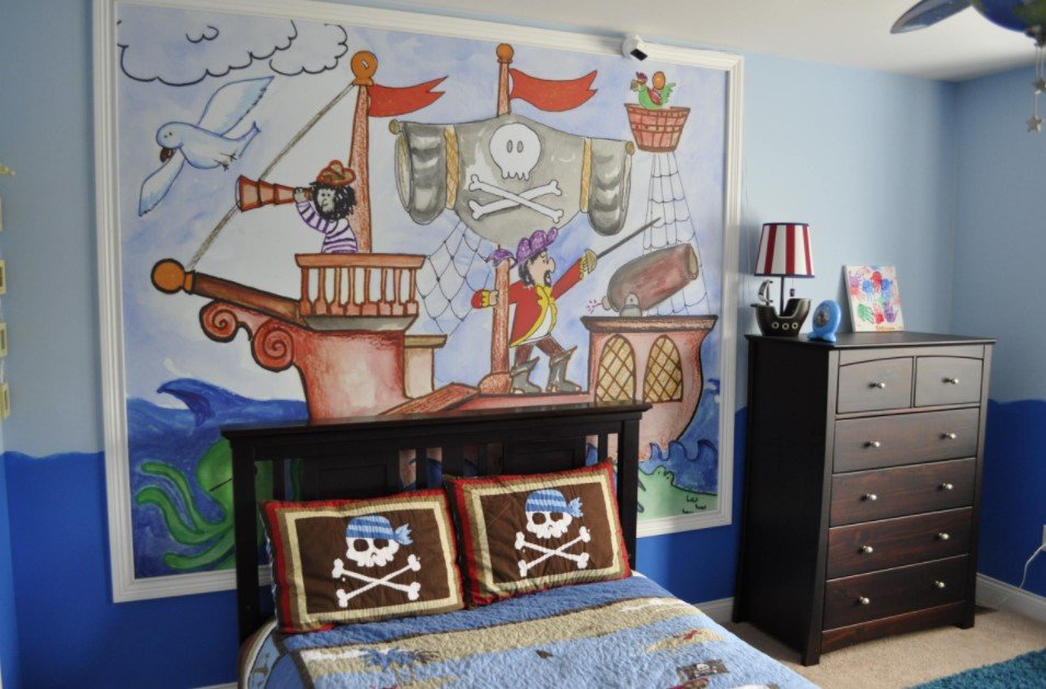 Отличный вариант – подобрать под фотообои в комнате для мальчика стену, на которую падает как можно больше света и не заставленную мебелью. Таким образом, картинка будет более естественной и яркой. В детскую комнату для мальчика хорошо подойдут светлые пастельные тона, светло-синие, светло-зеленые и серые тона.