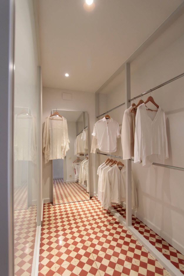Не забывайте, что каждая деталь гардероба должна быть освещена. Идеально подходят для этой комнаты прожекторы или небольшая люстра, если ваш гардероб большой. Для маленьких помещений более рациональны будут точечные светильники.
