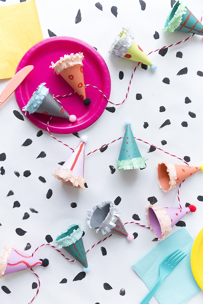 Из небольших цветных цилиндров (плотная цветная бумага или цветной картон) можно сделать динамит (намек на взрывной характер вечеринки) или свечки – это уже ассоциация со свечами для торта.